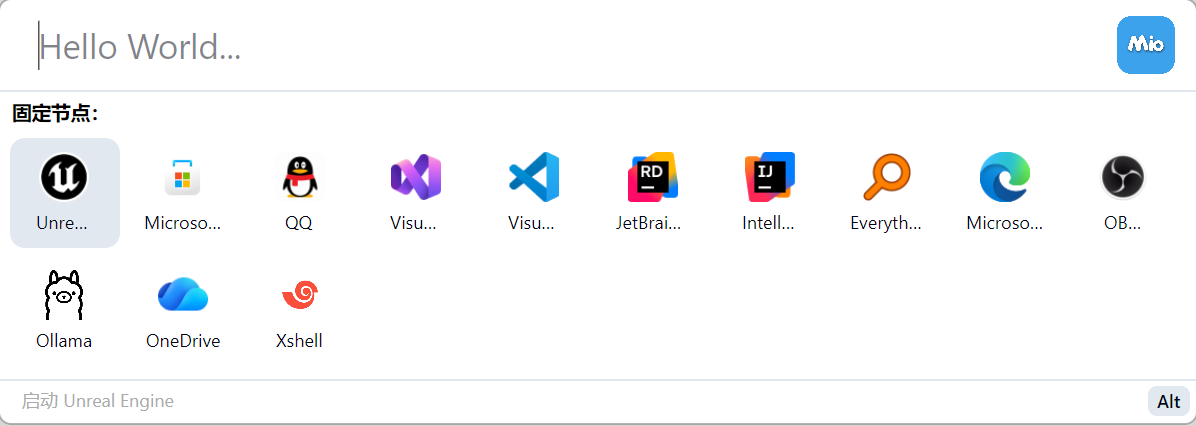 MioKit 是专为 Windows 设计的效率工具,通过插件系统提供应用启动、网页打开、文本输入等丰富功能。按下快捷键(默认 Alt + Space)即可唤起搜索框,快速找到并执行所需操作。
